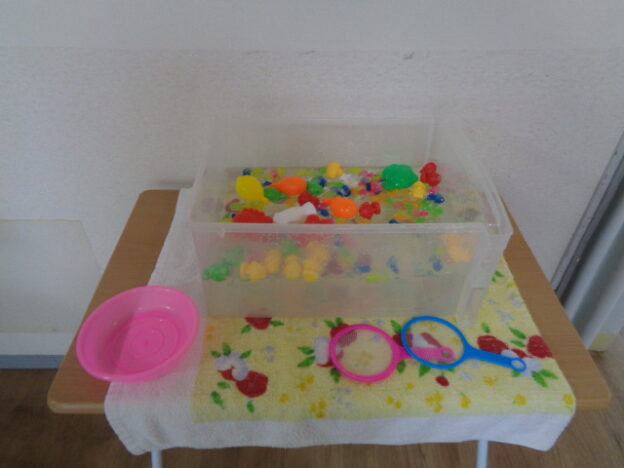 デイサービスでのご様子です。旗揚げゲーム、ジェンガを楽しまれています。