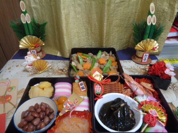明けましておめでとうございます。元旦は施設の手作りおせちを頂きました。