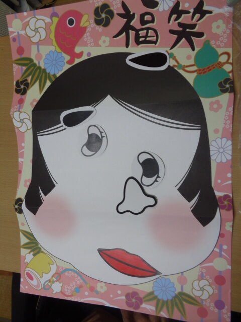 正月遊び恒例の福笑いで、たくさんの笑い声と笑顔で新しい年を迎えました。利用者様にとって健康で幸多き年となりますように。